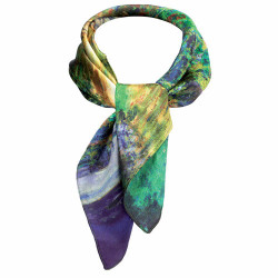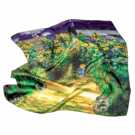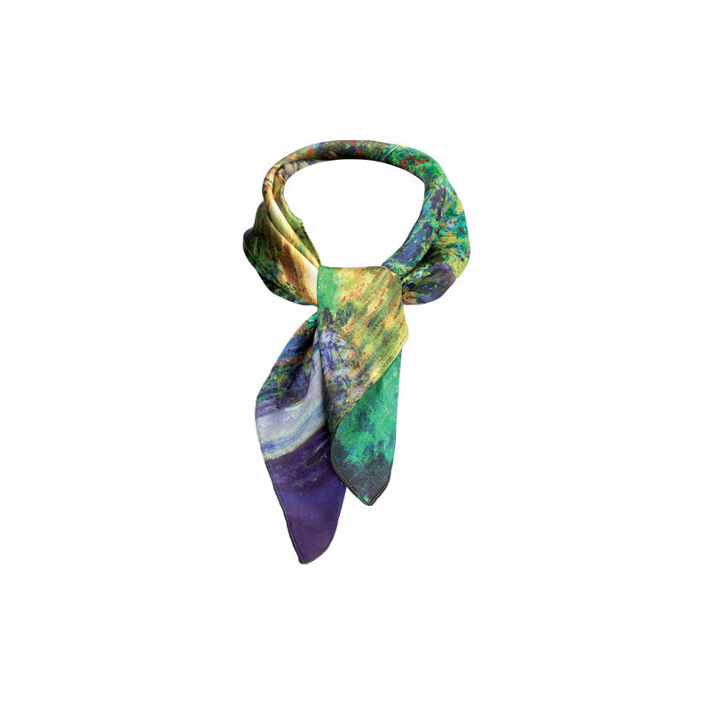 Ce carré de soie est inspiré du Jardin de l’artiste à Giverny, une oeuvre du maître de l’impressionnisme Claude Monet. Les couleurs printanières, les jeux de lumière et les reflets fleuris du tableau viendront délicatement orner votre tour de cou.