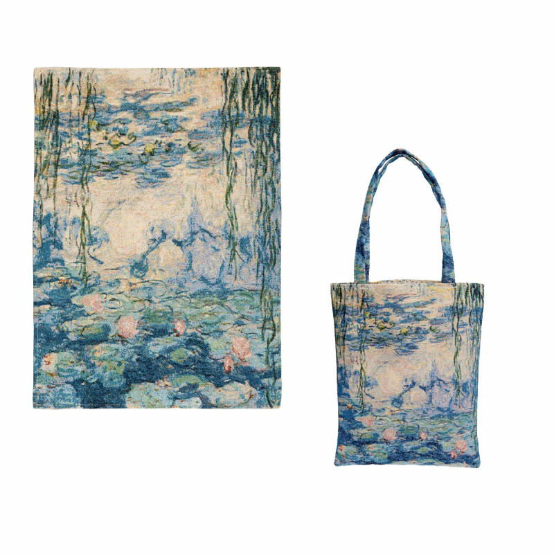 De 1895 à sa mort, le célèbre peintre Claude Monet réalise une œuvre unique et immense de près de 300 tableaux, intitulée Les Nymphéas. Sublimez votre intérieur avec cet ensemble d’objets décoratifs. Un sac arborant les mêmes motifs vous est offert.