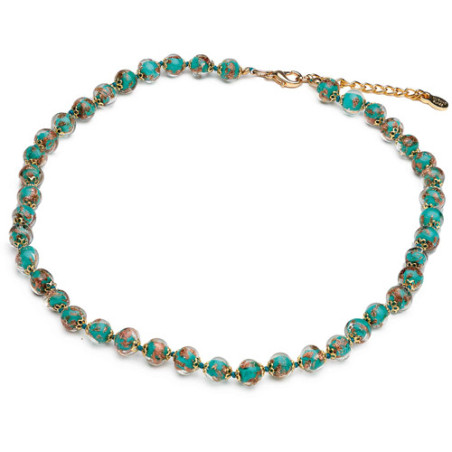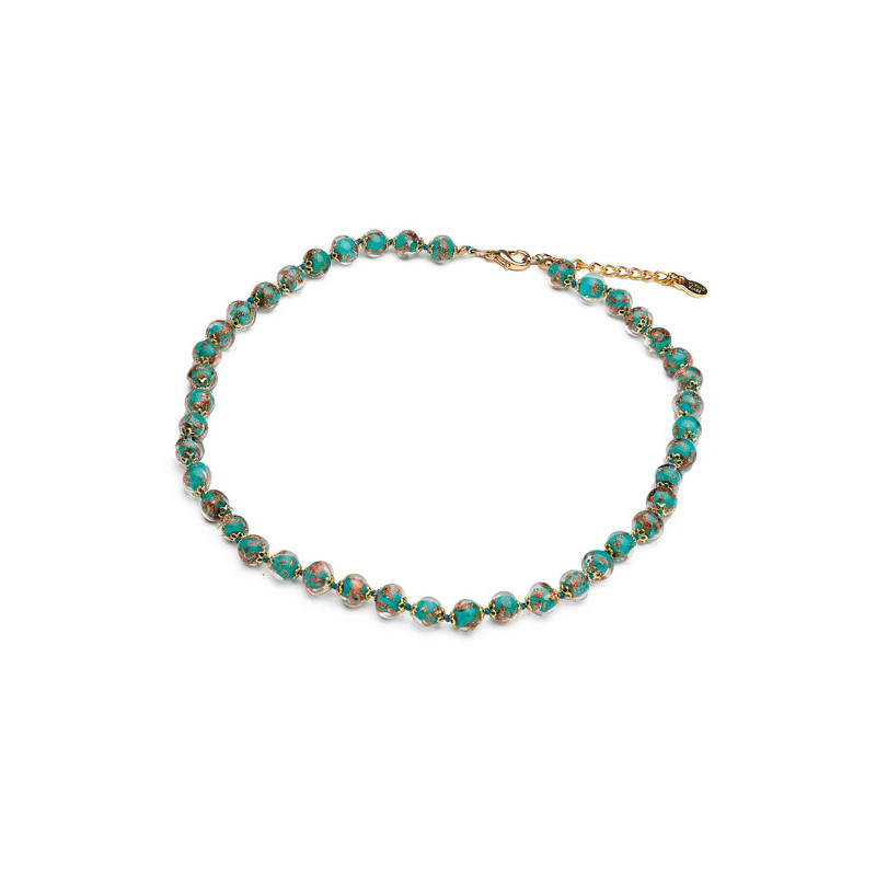 Succombez à ce superbe collier, orné de verre de Murano révélant de délicates nuances colorées et de subtils reflets, elle aura l’effet escompté sur vos interlocuteurs…. et vos admirateurs !
