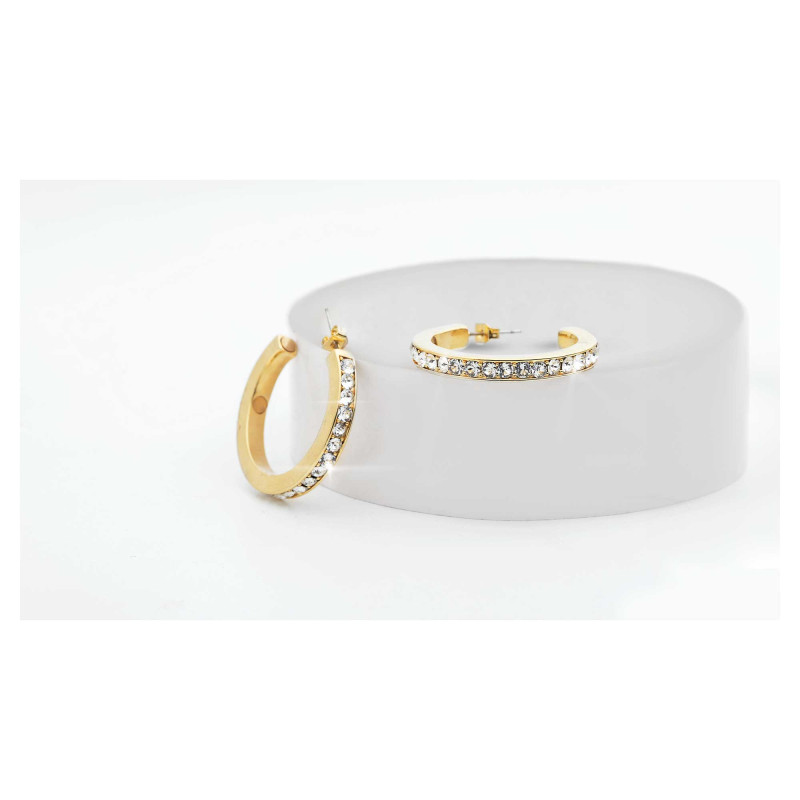 Ces créoles seront les élégantes complices de votre forme ! Brillant de 40 véritables cristaux Preciosa R, elles sont en effet dotées de 8 aimants (2500Gauss) dont le flux magnétique aurait des vertus apaisantes et équilibrantes pour l’organisme.