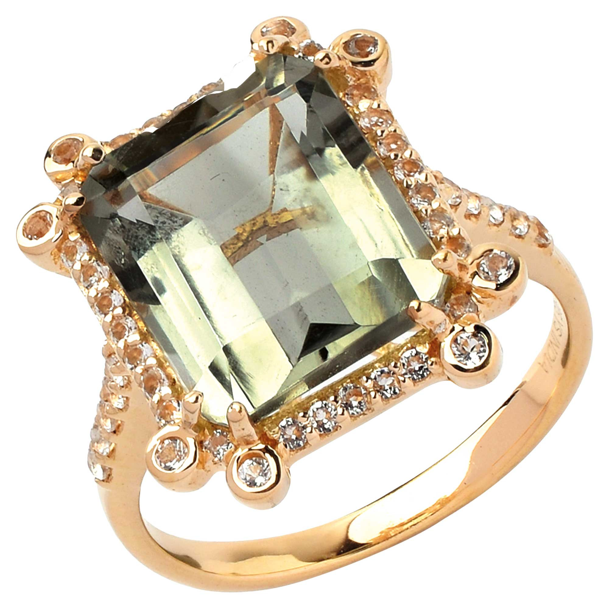 Cette bague est un véritable chef-d’œuvre, sublimant l’éclat rare de l’améthyste verte avec la brillance délicate des topazes blanches. Son design élégant, alliant simplicité et raffinement, en fait une pièce d’exception idéale pour toute occasion.