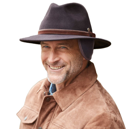 En feutre de laine isolant et imperméable, ce chapeau possède LE détail qui fait la différence : un protège-oreilles et nuque rabattable. Quasi indéformable, il est signé Fléchet, chapelier depuis 1859, et confectionné à la main dans le respect de la tradition.