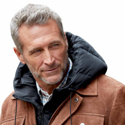 Plastron fermé par zip devant et capuche ajustable par cordon stop-coulisse.