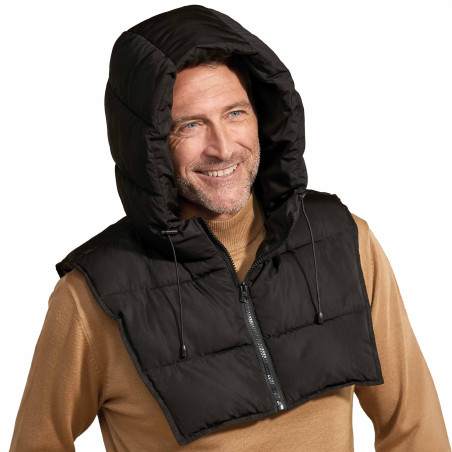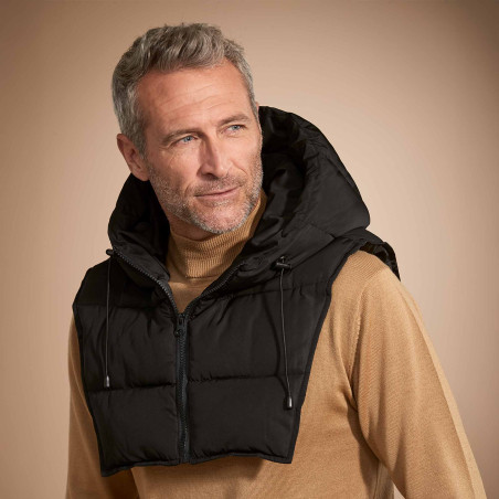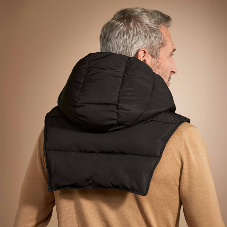 Facile à glisser sous un manteau, une veste ou un pull, elle protège aussi la gorge des coups de froid et réchauffe nuque et haut du dos grâce à son plastron matelassé, plus long sur l’arrière.