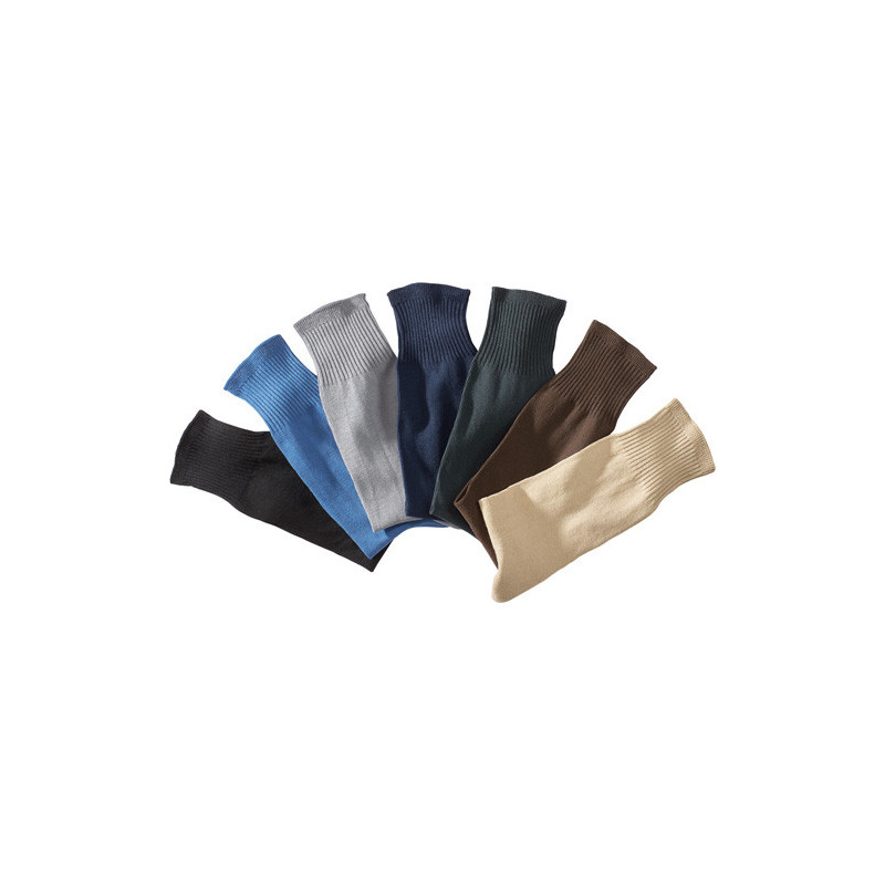 Ces chaussettes "double effet" bénéficient d’un tricotage spécial qui permet de supprimer les inconforts au porter. 1er effet : sans coutures, elles évitent les pressions douloureuses et les irritations. 2ème effet : grâce à un bord-côtes spécial évasé et sans élastique, elles ne compriment pas le mollet. Même agréable sensation côté matière puisqu’elles sont réalisées dans un mélange sain et respirant, 90% coton et 10% polyamide. Livré en 7 coloris assortis (gris, noir, anthracite, indigo, marine, beige et marron), ce semainier vous offre 7 jours de bien-être.