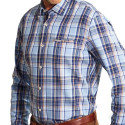 100% coton. Col pointes libres, poche poitrine raccordée et passepoilée.