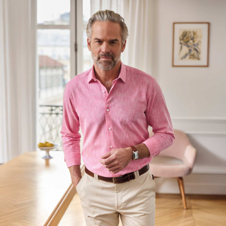 Un mélange frais et léger agréable à porter, un tissu flammé qui donne aux coloris un fini pastel bien de saison : c’est l’association parfaite !