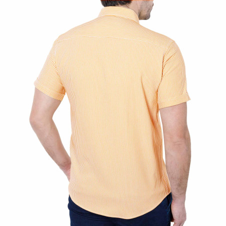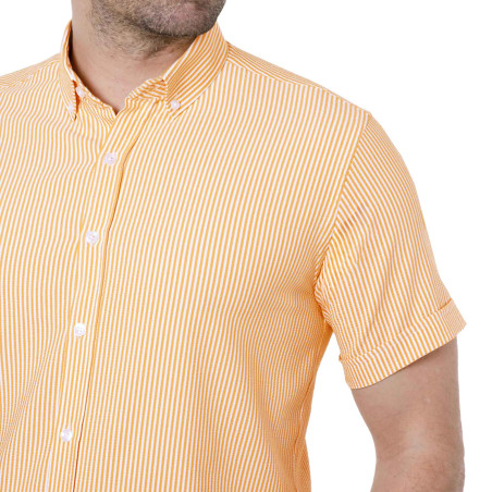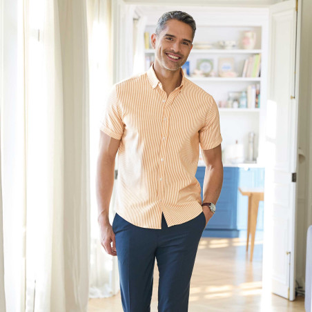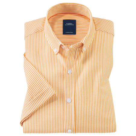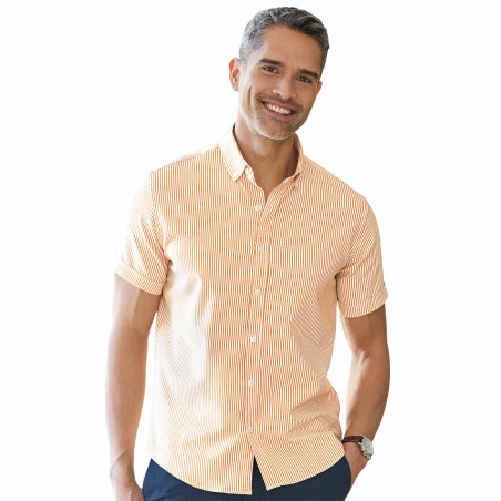 La fraîcheur s’installe avec cette chemisette en seersucker, dont le léger gaufrage optimise la circulation de l’air. Habillée de fines rayures verticales amincissantes, elle gagne encore en confort grâce à son extensibilité.