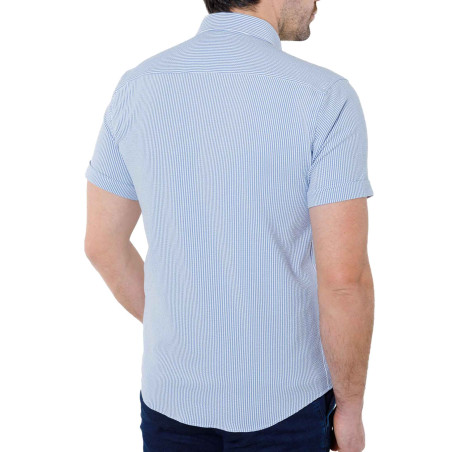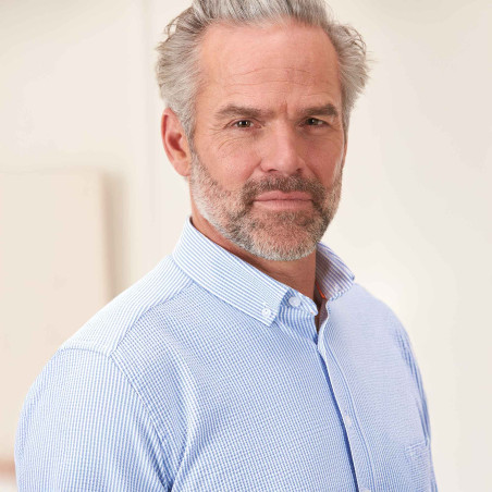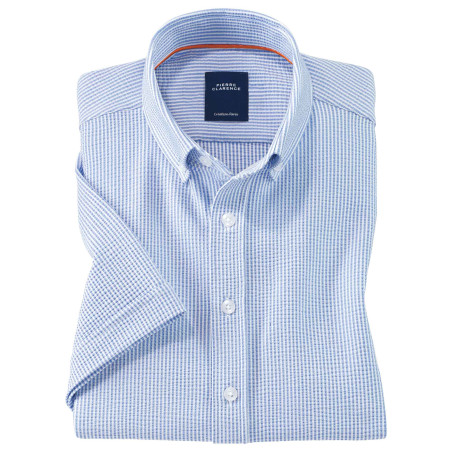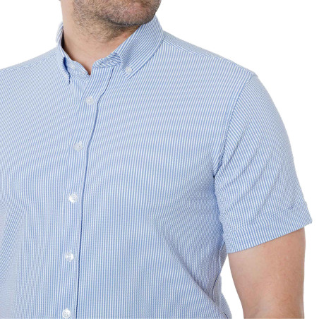 La fraîcheur s’installe avec cette chemisette en seersucker, dont le léger gaufrage optimise la circulation de l’air. Habillée de fines rayures verticales amincissantes, elle gagne encore en confort grâce à son extensibilité.
