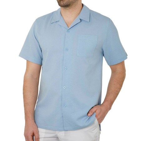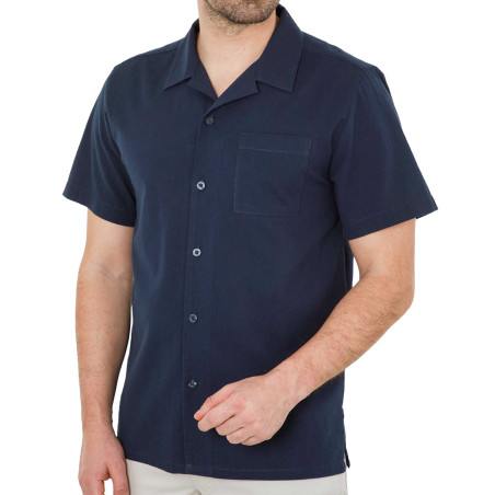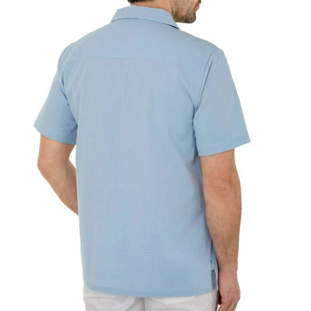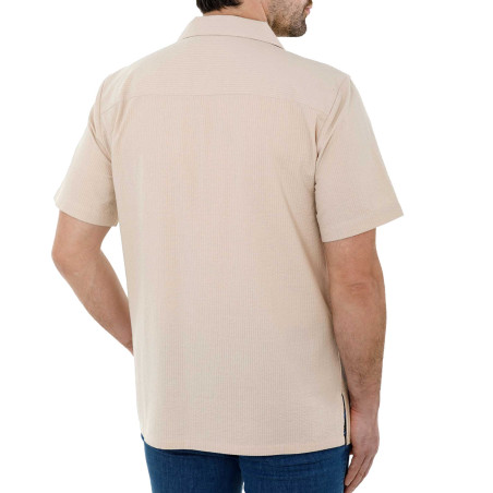 Fini la chemisette qui colle à la peau… place au bien-être « climatisé » avec cette création ! Son tissu en coton seersucker possède un léger gaufrage qui optimise la circulation de l’air. Atout + : des fentes côtés pour un porter par-dessus le pantalon qui rajeunit l’allure !