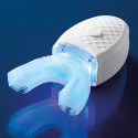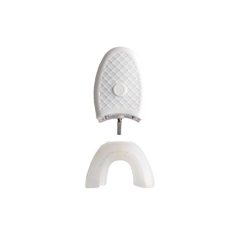 Cette brosse à dents révolutionnaire opère un nettoyage complet en 45 secondes seulement et sans effort : il suffit de déposer du dentifrice dans la gouttière souple, de la placer dans la bouche et de lancer le processus. 1- sa forme en U permet de couvrir toute la dentition. 2- des centaines de picots silicone vibrants agissent simultanément sur toutes les faces des dents. 3- elle utilise l’action combinée des ultrasons et ultraviolets pour décoller les résidus alimentaires, éliminer les bactéries et aider au blanchiment de l’émail. Selon votre sensibilité dentaire, vous choisirez le mode intense, modéré ou doux.