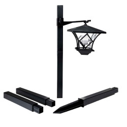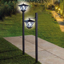 Un réverbère qui change de style au gré de vos envies… c’est ce que vous offre ce modèle ! Sa lanterne 4 faces peut se positionner de 2 manières différentes : ➀ Version classique surmontant le pied ou ➁ Version " victorienne ", suspendue sur le côté. Haut de 140 cm env. et se plantant simplement dans le sol, il est doté de panneaux solaires qui alimentent sa LED puissante afin qu’elle s’allume le soir.