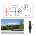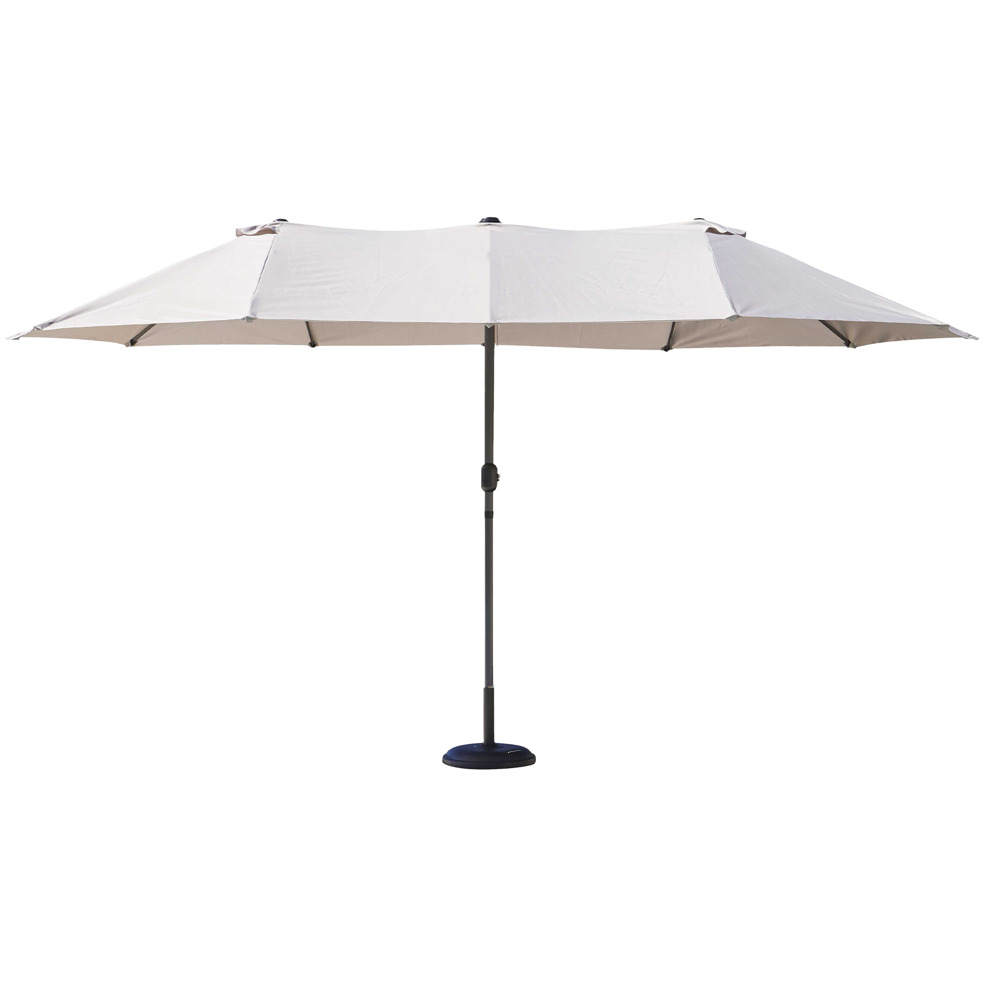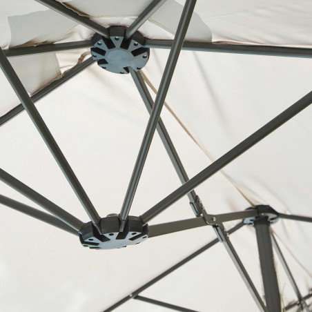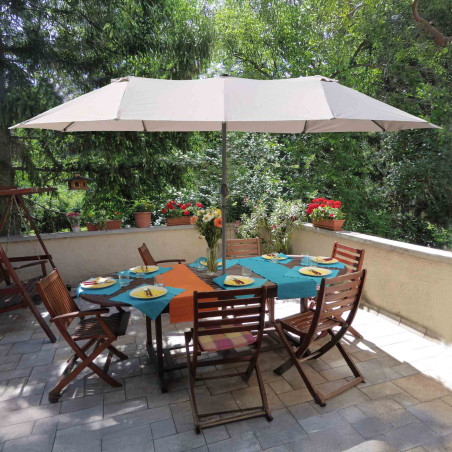 Enfin un parasol assez grand pour mettre à l’ombre votre tablée familiale ou buffet d’été ! De forme ovale, il couvre une surface d’environ 12 m2, largement de quoi préserver du soleil une table de 12 convives ou plusieurs transats ! Pratique, sa structure double lui offre stabilité et prise au vent réduite tandis que sa manivelle permet de l’ouvrir et le fermer en toute facilité.