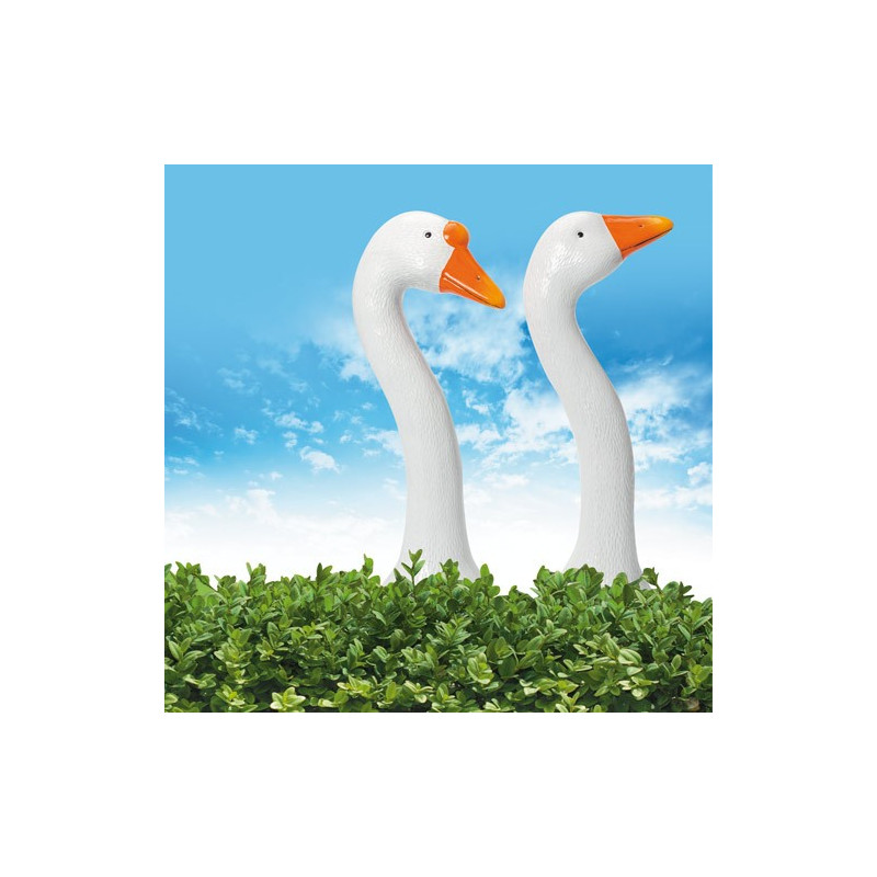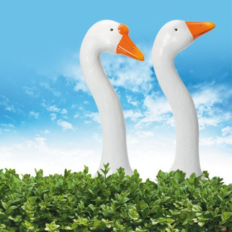 Envie d’embellir votre jardin ? Ces têtes d’oies joueront parfaitement le jeu ! Piquez-les dans le sol, faites dépasser leurs longs cous d’un petit buisson ou un massif de fleurs, elles donneront une touche champêtre et amusante à votre décor... et ne manqueront pas d’éveiller la curiosité de vos voisins et visiteurs !