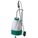 D’une contenance de 16 litres, ce pulvérisateur au format trolley est aussi sans fil. Et c’en est fini du pompage : la pression est générée au moyen de la poignée gâchette ! Muni d’un tuyau flexible et d’une lance télescopique (buse à jet réglable), il permet d’accéder aux moindres recoins. Peu rempli, vous pouvez porter le réservoir (détachable) sur le dos à l’aide de 2 bretelles. Le + : il est livré avec une cloche de désherbage pour une pulvérisation ciblée sur les mauvaises herbes.