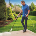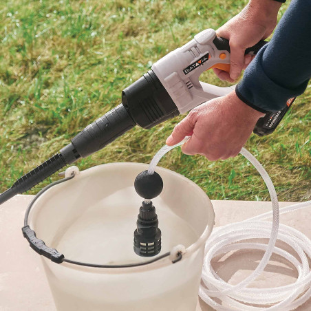 Sans fil, ce nettoyeur délivre une puissance jusqu’à 22 bars pour nettoyer sans effort et sans risque, voiture, vélo, mobilier de jardin, camping-car, terrasse, allée… Et grâce à sa fonction d’aspiration automatique, il peut être relié à n’importe quelle source d’eau : robinet évidemment mais aussi mare, piscine, récupérateur, seau… Enfin, vous pouvez préalablement utiliser le distributeur de détergent fourni pour un nettoyage approfondi.