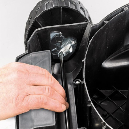 Équipée d’un bac récolteur de 30 litres, elle s’adapte à vos besoins avec ses 3 hauteurs de tonte (25, 40 ou 55 mm). Sécurisée, elle possède un bouton de déverrouillage pour activer le moteur et un guide-câble, afin de ne plus couper la rallonge !