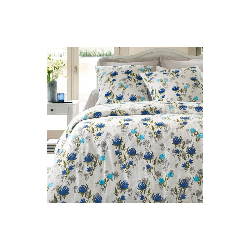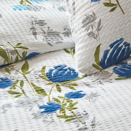 ... avec ses fleurs délicatement esquissées sur un tissu seersucker pur coton au léger gaufrage «respirant». Livrée avec ses 2 taies d’oreiller, elle sèmera le soleil et la douceur dans votre chambre.