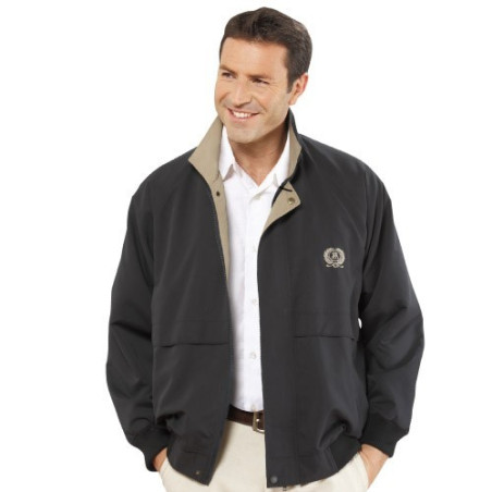 Fermeture zippée sous patte pressionnée, poignets et base élastiqués, broderie poitrine, 2 poches biais.