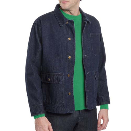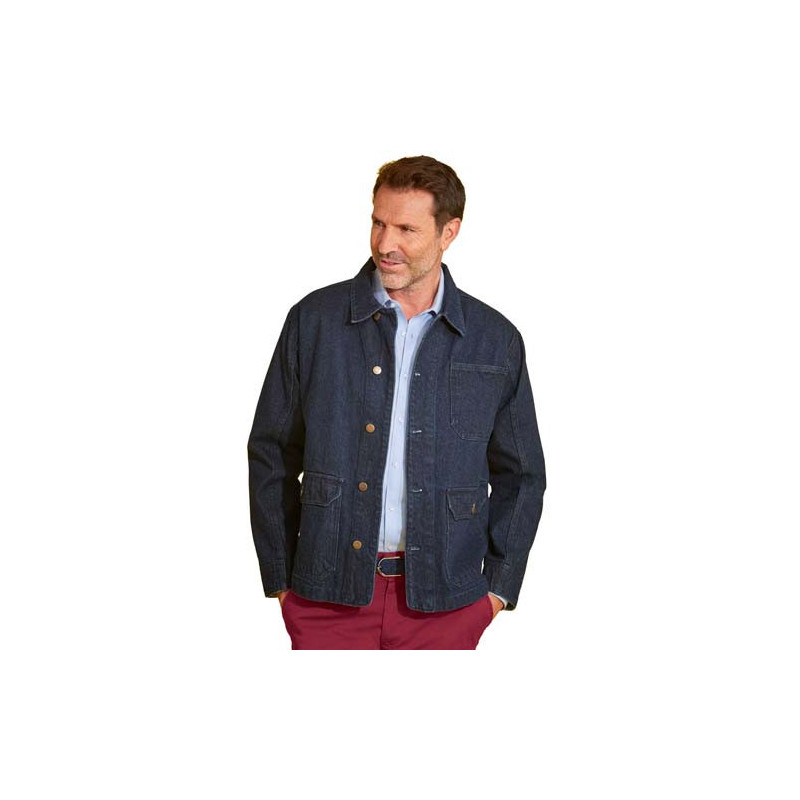 Elle fait son grand retour dans les collections, revisitée et actualisée : la veste de peintre ! Si elle arbore les 3 grandes poches rectangulaires et le col "chevalière" du modèle d’origine, elle est ici confectionnée en coton denim bleu foncé pour un style décontracté-chic.
