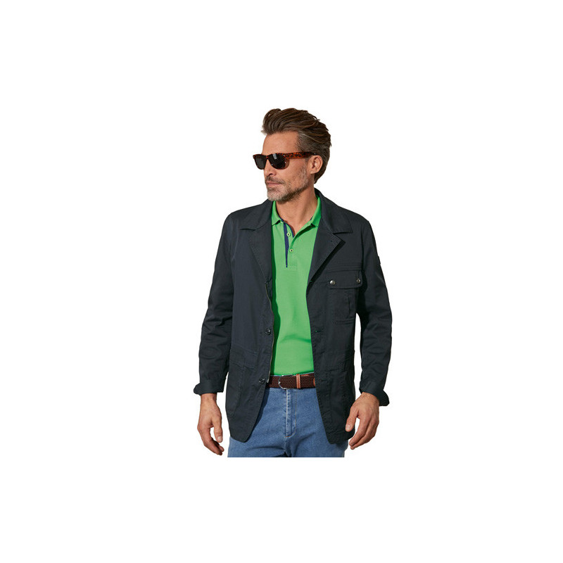 D’un tombé net tout en conservant une belle souplesse (gage de décontraction), son tissu de twill est confectionné dans un savant mélange de fibres offrant haute respirabilité, thermo-régulation et entretien facile. Détail malin : des œillets d’aération judicieusement placés accroissent encore son confort.