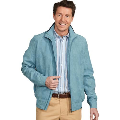 Il possède toutes les qualités du parfait blouson d’été : une ligne sport-chic inspirée du "teddy", un coloris bleu glacier "rafraîchissant" et surtout, il est en Micro-Skin®, ce tissu au toucher peau de pêche offrant souplesse et légèreté. Détail malin : la partie haute de la doublure est en maille filet pour une bonne respirabilité.