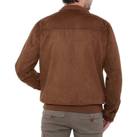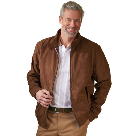 Coupé dans un tissu suédé au toucher velouté rappelant le daim, ce blouson est bien plus facile à vivre puisqu’il passe en machine. Les gentlemen apprécieront sa doublure à carreaux au style british.