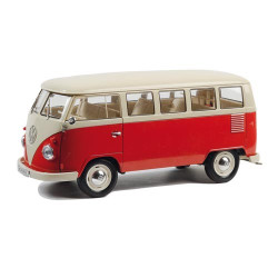 Peut-être avez-vous sillonné la France ou la célèbre route 66 à son bord ou bien encore travaillé avec lui… Le combi Volkswagen Type 1 est un véhicule mythique : star de l’asphalte (on l’y croise depuis 60 ans), star de cinéma (près de 1845 apparitions !) et star de la polyvalence puisque tour à tour utilitaire, minibus et 1er camping-car de l’histoire ! Retrouvez-le avec cette superbe reproduction (1/18e) de 1963 aux détails très soignés : pare-brise 2 parties (d’où son surnom de Split, diviser, en anglais), coloris orangé/ivoire, roues directionnelles, portes et coffre ouvrants et ses 9 places !