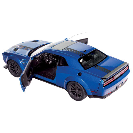 Complétez votre collection avec cette Dodge Challenger R/T, dans sa teinte captivante de bleu électrique. Cette réplique est fidèle de la légendaire voiture américaine, avec ses lignes musclées et son design emblématique. Dotée de détails minutieux, des jantes larges à la carrosserie élargie, chaque aspect est soigneusement reproduit pour capturer l’essence brute de la Challenger.