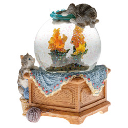 Que font des chatons espiègles (pléonasme) devant un bocal, à votre avis ? Ils essaient d’attraper les poissons. Maintenant, imaginez que le bocal se recouvre de neige… cela leur donne deux raisons de jouer, et si une musique accompagne la scène, c’est une invitation à la tendresse et à la joie !