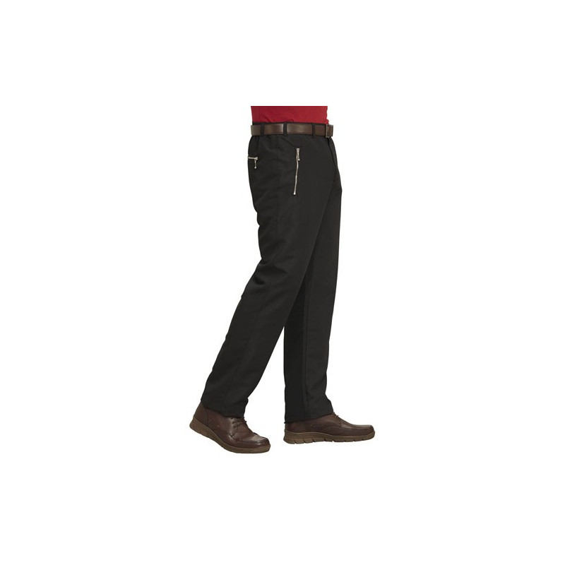 Tour de ceinture à passants, fermeture zip et bouton. 2 poches avant, 2 poches arrière. Dessus microfibre polyester, doublure polyester. Coloris noir.
