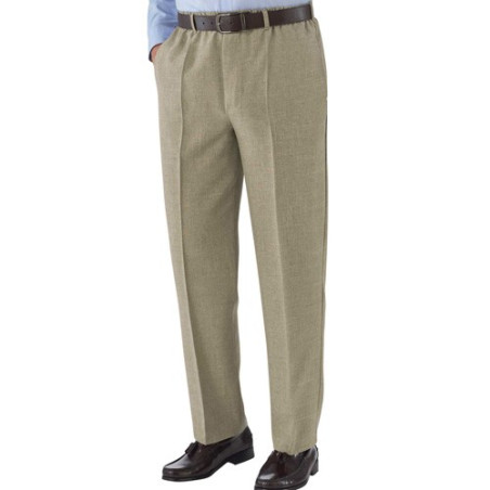 Taille élastiquée avec passants, 2 plis, 2 poches couture.