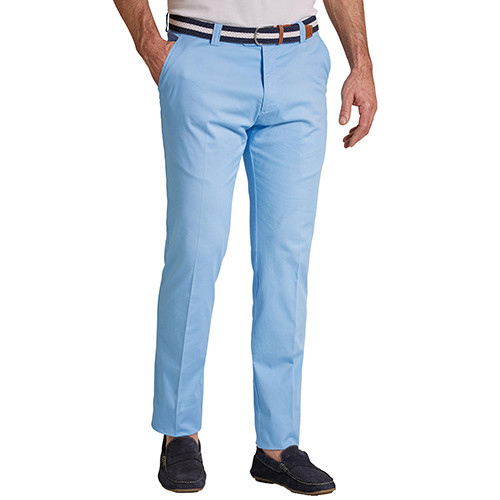 Confectionné dans un twill de coton extensible pour allier aisance et légèreté, ce pantalon coupe ville fait honneur aux beaux jours avec son lumineux coloris azur… Une alternative chic et mode au pantalon de costume !