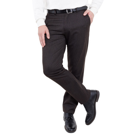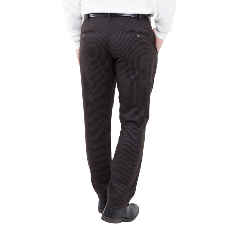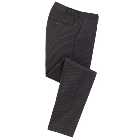 Tour de ceinture à passants semi-élastiqué côtés, fermeture zip et boutons, 2 poches italiennes, 2 poches arrière.