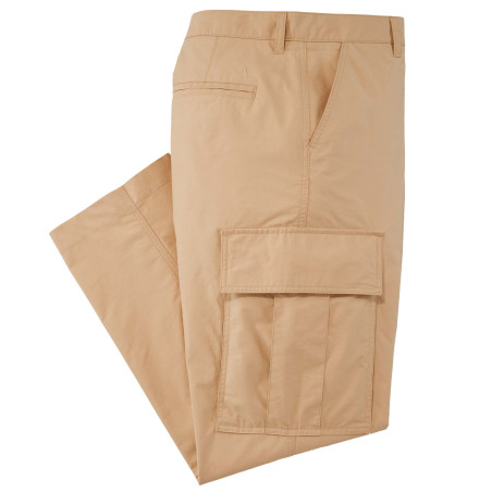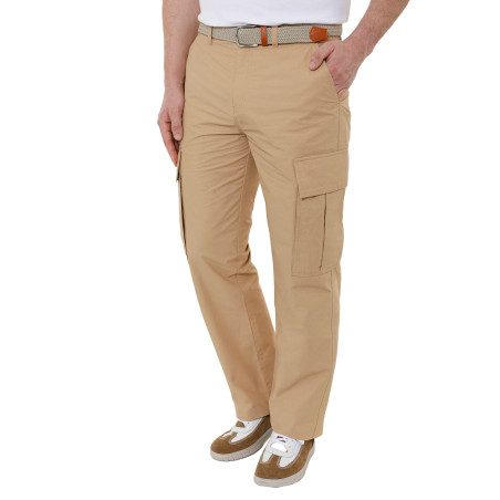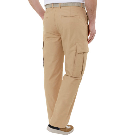 Tour de ceinture à passants, fermeture zip et bouton, 2 poches italiennes, 2 poches jambes à rabat boutonné, 2 poches au dos.