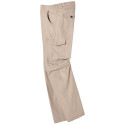 2 poches demi-lune côtés, 2 poches arrière à rabat boutonné et 2 poches à rabat pressionné à mi-cuisses, tour de ceinture à passants, fermeture zip et bouton.