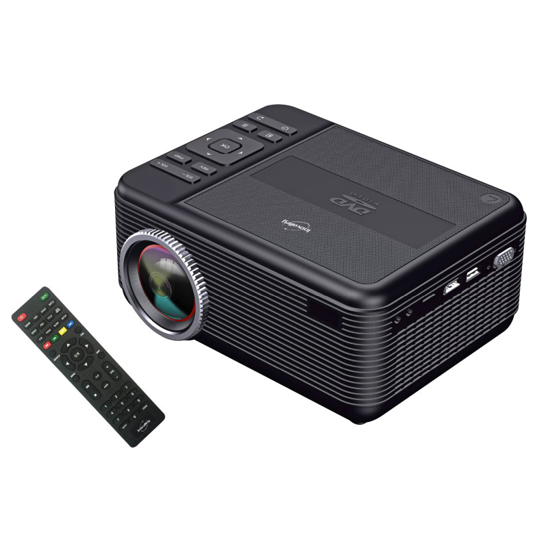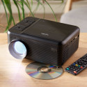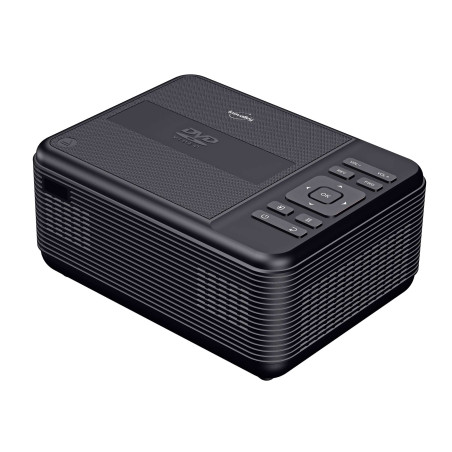 Vivez le cinéma en grand dans votre salon avec ce vidéoprojecteur offrant jusqu’à 3,80 m d’écran ! Son fonctionnement est ultrasimple : grâce au lecteur DVD intégré, il suffit d’un mur clair et d’une prise pour lancer la projection. Sa luminosité de 2000 lumens et ses haut-parleurs (2 x 10 W) assurent d’excellentes conditions visuelles et sonores pour une immersion optimale. Vous pouvez aussi projeter vidéos et photos via sa connectique complète. Préparez le pop-corn, installez-vous confortablement, la séance va commencer !