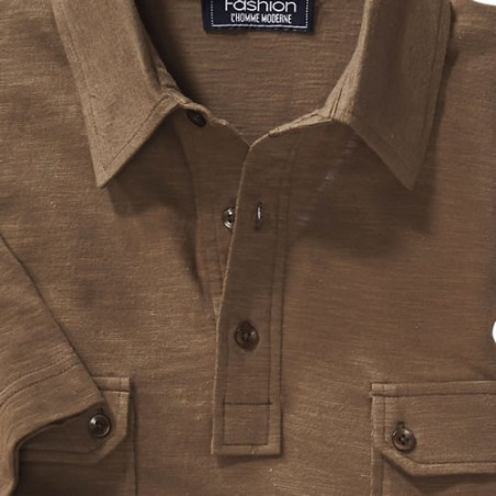 Emblématiques du style baroudeur avec leurs 2 poches poitrine à rabat boutonné, ces polos sont réalisés en jersey flammé, un coton souple et léger à l’aspect légèrement texturé. Livrés en 2 coloris : 1 tabac + 1 blanc.