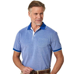 Sa maille a été travaillée à la manière d’un tissage oxford (1 fil de couleur et 1 fil blanc) pour lui donner cet effet chiné très stylé. En pur coton mercerisé, gage de douceur, il est parfait jusque dans ses finitions : col et bas des manches unis en côtes 1/1, patte de boutonnage contrastée et fentes côtés.