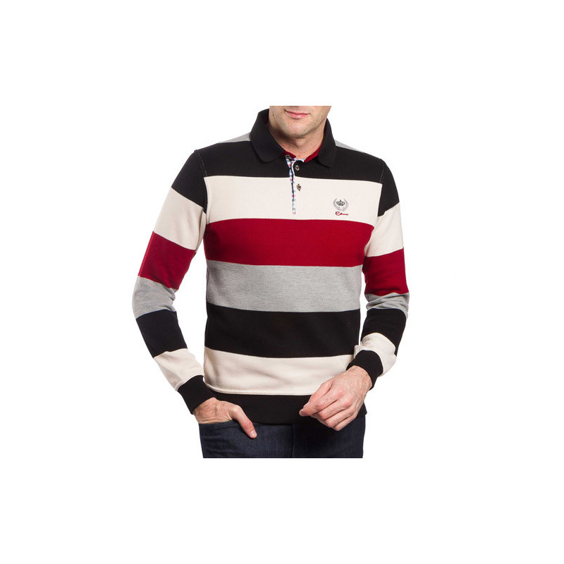 Col boutonné, finitions bords-côtes col, poignets et base.