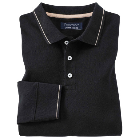 Sa simplicité fait toute son élégance… En maille piquée pur coton pour être impeccable de tenue, décliné en 2 coloris, il est juste souligné d’un liseré contrasté au col et aux manches (beige sur le modèle noir et blanc sur le beige).