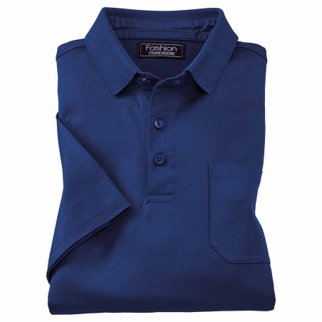 Col polo tricot fermé par 3 boutons, poche poitrine, fentes côtés.