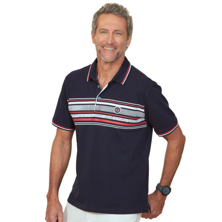 Avec ses rayures graphiques, son écusson poitrine et ses finitions soignées (bord-côtes rayé aux col et manches, galon sur fentes côtés), ce polo affiche un vrai supplément de style. En maille piquée pur coton pour la fraîcheur, il rejoint le club des polos chics d’été.