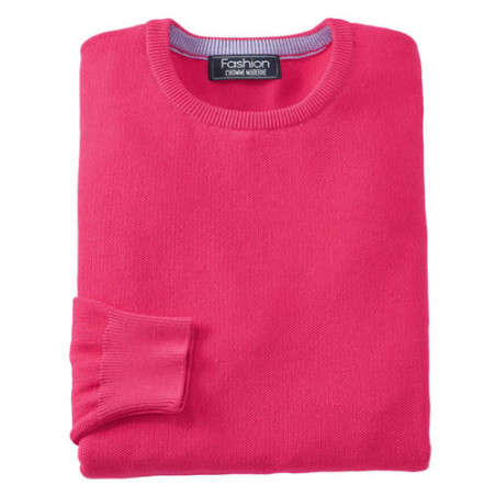 Col rond à liseré intérieur contrasté, finitions bords-côtes.