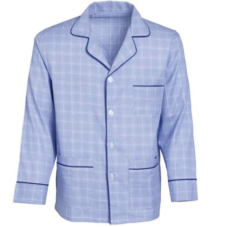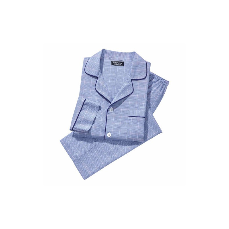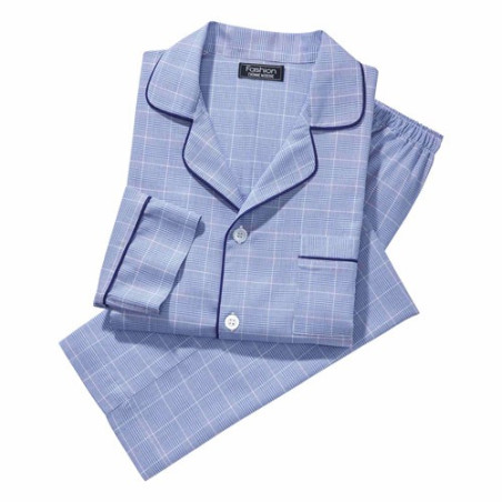 Grande classe pour ce modèle qui s’est habillé d’un imprimé Prince-de-Galles sur un beau bleu ciel lumineux. Pur coton, il est frais et léger pour la saison estivale.