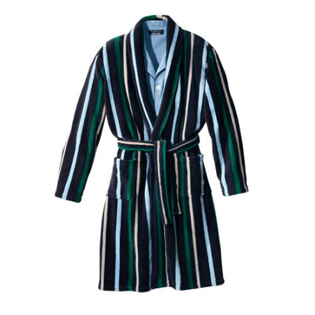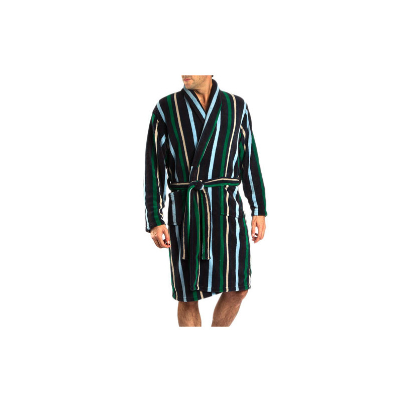 Col châle, ceinture à nouer sous passants, 2 poches plaquées. 100% polaire polyester.