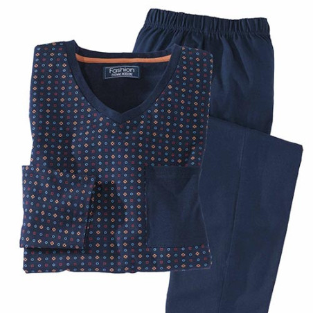 La simplicité et le naturel sont parfois ce qu’il y a de mieux, à l’instar de cet élégant pyjama en jersey pur coton. Souple et naturellement extensible, il bénéficie également d’une coupe tout confort (pantalon à taille élastiquée). Et le style n’est pas en reste avec son imprimé de micro-motifs géométriques sur fond marine.
