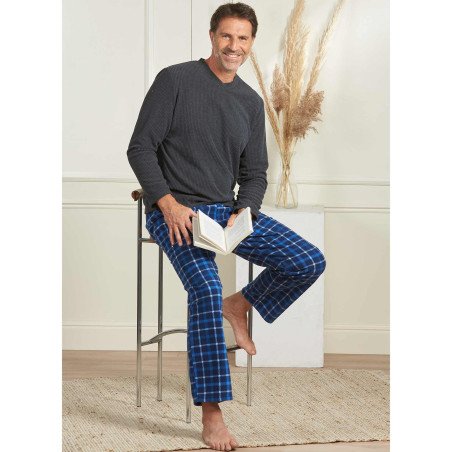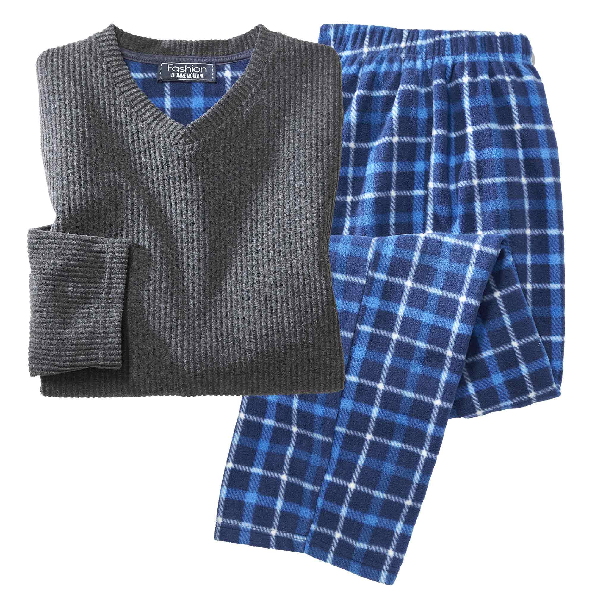 … exemplaires pour ce pyjama ! Sa maille polaire toute douce isole du froid tout en offrant une belle respirabilité. Côté style, on aime le haut finement côtelé et le duo de coloris anthracite et bleu lumineux.
