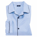 Élégance et confort made in France avec un tissu pur coton sain et doux et d’élégantes rayures bleues amincissantes.
