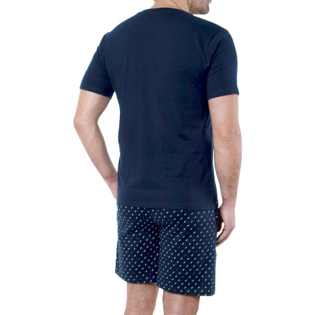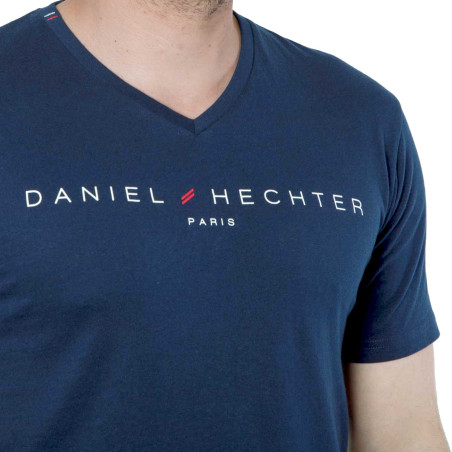 Haut uni marine, bande de propreté dans le col.